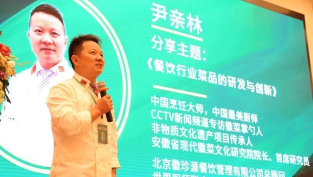 中国最美厨师,徽菜掌勺人,非物质文化遗产项目传承人,安徽省现代徽菜文化研究院院长-尹亲林老师发表演讲《餐饮行业菜品的研发与创新》